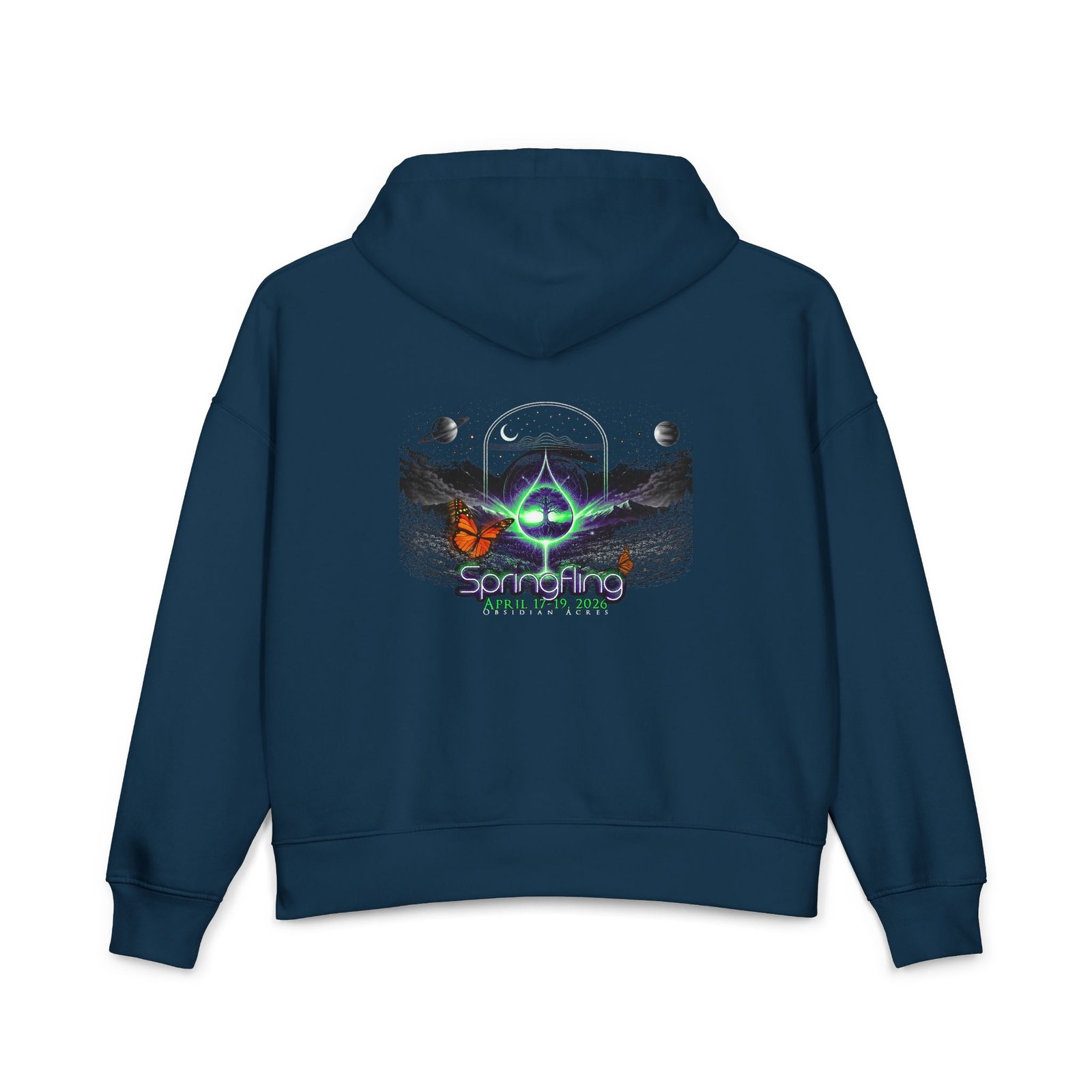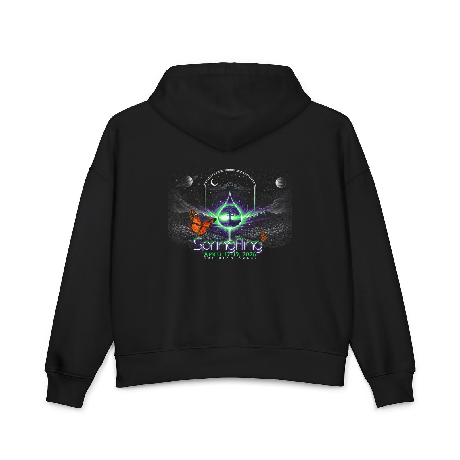 Featuring the Evolution Tree on the front and the official Spring Fling 2026 artwork on the back, this piece reflects the energy of the first year at Obsidian Acres — where everything begins.